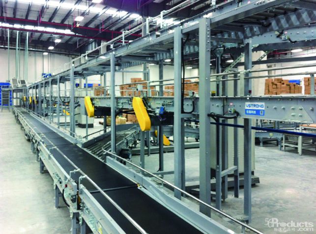 6.高速滑塊式分揀機系統(tǒng):用于打包完成商品的自動路向分揀。