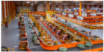 目前,金峰集團(tuán)承建了新加坡Shopee公司的幾個(gè)東南亞核心大型樞紐。助力該企業(yè)走向東南亞、南美等全球化戰(zhàn)略。去年,我們完成Shopee菲律賓的項(xiàng)目,金額高達(dá)2000多萬(wàn)美金。該項(xiàng)目引入了金峰智能自動(dòng)化分揀設(shè)備:交叉帶分揀機(jī)、NC分揀機(jī)和擺輪分揀機(jī)及相關(guān)配套設(shè)備,如AI相機(jī)、DWS和單件分離等。此項(xiàng)目除了裝卸貨,基本上實(shí)現(xiàn)全場(chǎng)站的無(wú)人化。菲律賓Shopee的物流合作伙伴SPX Express菲律賓公司于2月正式啟用了該國(guó)最大的分揀中心(SOC 5),該中心每天可以處理超過300萬(wàn)個(gè)包裹。工人卸貨后,貨物通過DWS系統(tǒng)掃描被單件分離機(jī)控制并輸送至自動(dòng)化分揀。DWS將掃描、稱重和測(cè)量包裹的尺寸,并將所有信息同步發(fā)送到擺輪系統(tǒng),把包裹分揀到相應(yīng)的目的地。10條矩陣線的處理能力為40000條/小時(shí),能夠確保即使在高峰時(shí)間也不會(huì)發(fā)生擁堵,最大程度上減少人力。