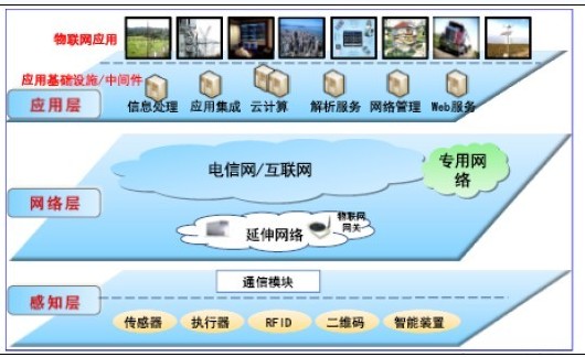 依據(jù)工信部電信研究院的分析,物聯(lián)網(wǎng)網(wǎng)絡(luò)架構(gòu)由感知層、網(wǎng)絡(luò)層和應(yīng)用層組成。感知層實(shí)現(xiàn)對物理世界的智能感知識別、信息采集處理和自動控制,并通過通信模塊將物理實(shí)體連接到網(wǎng)絡(luò)層和應(yīng)用層。網(wǎng)絡(luò)層主要實(shí)現(xiàn)信息的傳遞、路由和控制。應(yīng)用層提供信息處理、計(jì)算等通用基服務(wù)設(shè)施、能力及資源調(diào)用接口,以實(shí)現(xiàn)物聯(lián)網(wǎng)在眾多領(lǐng)域的各種應(yīng)用。