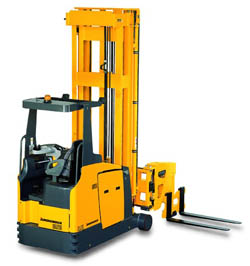 直線運(yùn)行型堆垛機(jī)只能在巷道內(nèi)直線軌道上運(yùn)行,不能自行轉(zhuǎn)換軌道。只能通過其他輸送設(shè)備轉(zhuǎn)換巷道,如堆垛機(jī)轉(zhuǎn)運(yùn)車。直線型堆垛機(jī)可以實(shí)現(xiàn)高速運(yùn)行,能夠滿足出入庫頻率較高的立體倉庫作業(yè),應(yīng)用最為廣泛。曲線運(yùn)行型堆垛機(jī)車輪與下橫梁是通過垂直軸鉸接的,能夠在環(huán)形或其他曲線軌道上運(yùn)行,即可以走曲線,不通過其他輸送設(shè)備便可以從一個(gè)巷道自行轉(zhuǎn)移到另一個(gè)巷道。此種堆垛機(jī)通常亦叫做轉(zhuǎn)軌堆垛機(jī)。曲線運(yùn)行型堆垛機(jī)在使用上有局限性,只適用于出入庫頻率較低的立體倉庫。因?yàn)椴坏珗?chǎng)地要受到轉(zhuǎn)彎半徑的限制,而且轉(zhuǎn)彎時(shí)速度特別慢,不能滿足出入庫頻率高的立體倉庫作業(yè)。