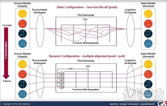 2、細分品類整合供應(yīng)鏈運營:不管是電商還是傳統(tǒng)零售,成功的品牌和平臺本質(zhì)上是細分的品類為核心進行的驅(qū)動,全渠道模式下供應(yīng)鏈運營整合的核心在品類。下圖是國際供應(yīng)鏈研究機構(gòu)對未來供應(yīng)鏈發(fā)展趨勢分析,未來的供應(yīng)鏈是以品類為核心進行細分,拆分到多個單元組,最終實現(xiàn)扁平化驅(qū)動的供應(yīng)鏈驅(qū)動模式。