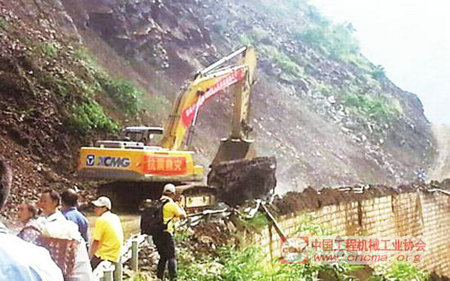 徐工挖掘機進入災(zāi)區(qū)在龍頭山鎮(zhèn)塌方地段緊急搶修道路