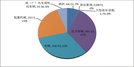 截至2013年底,全國特種設(shè)備總量達936.91萬臺,比2012年上升14.02%;其中:鍋爐64.12萬臺,壓力容器301.12萬臺,電梯300.93萬臺,起重機械213.50萬臺,場(廠)內(nèi)專用機動車輛55.36萬輛,大型游樂設(shè)施1.79萬臺(套),客運索道873條,氣瓶14387萬只,壓力管道89.83萬公里。