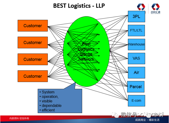 公司2007年成立的時(shí)候,我背著包拜訪很多客戶。我經(jīng)常背著包過去聽他們講課,想該怎么做。說實(shí)話,當(dāng)時(shí)很多人也覺得我們不太靠譜,東西講得高大上,但是確實(shí)什么東西都沒有用。只是說要做這件事。我們找一大堆的3PL公司去做各種各樣的服務(wù)。當(dāng)時(shí)一些大企業(yè)有三十家到五十家的公司去做物流,現(xiàn)在是很難做的,系統(tǒng)如何統(tǒng)一,服務(wù)怎么樣來做,都非常難。當(dāng)時(shí)我們說百世的是在中間做一個(gè)系統(tǒng),讓信息、服務(wù)、標(biāo)準(zhǔn)等等所有東西的對(duì)接。這是當(dāng)時(shí)我們所做的決定。