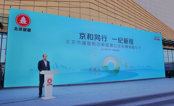 北汽集團(tuán)黨委常委、副總經(jīng)理,北汽福田黨委書記、董事長常瑞在捐贈(zèng)儀式上致辭,常瑞表示,深入貫徹黨中央治疆方略,對口支援、助力新疆發(fā)展是北京市屬企業(yè)義不容辭的政治使命,和田地區(qū)是北京市深入貫徹國家對口援疆政策的前沿陣地。