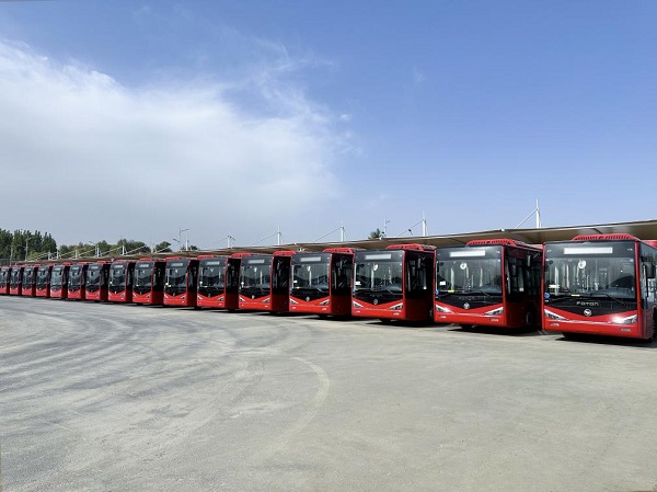 智慧公交承載援疆使命!165輛福田歐輝純電客車再次批量駛?cè)牒吞?/h1>
