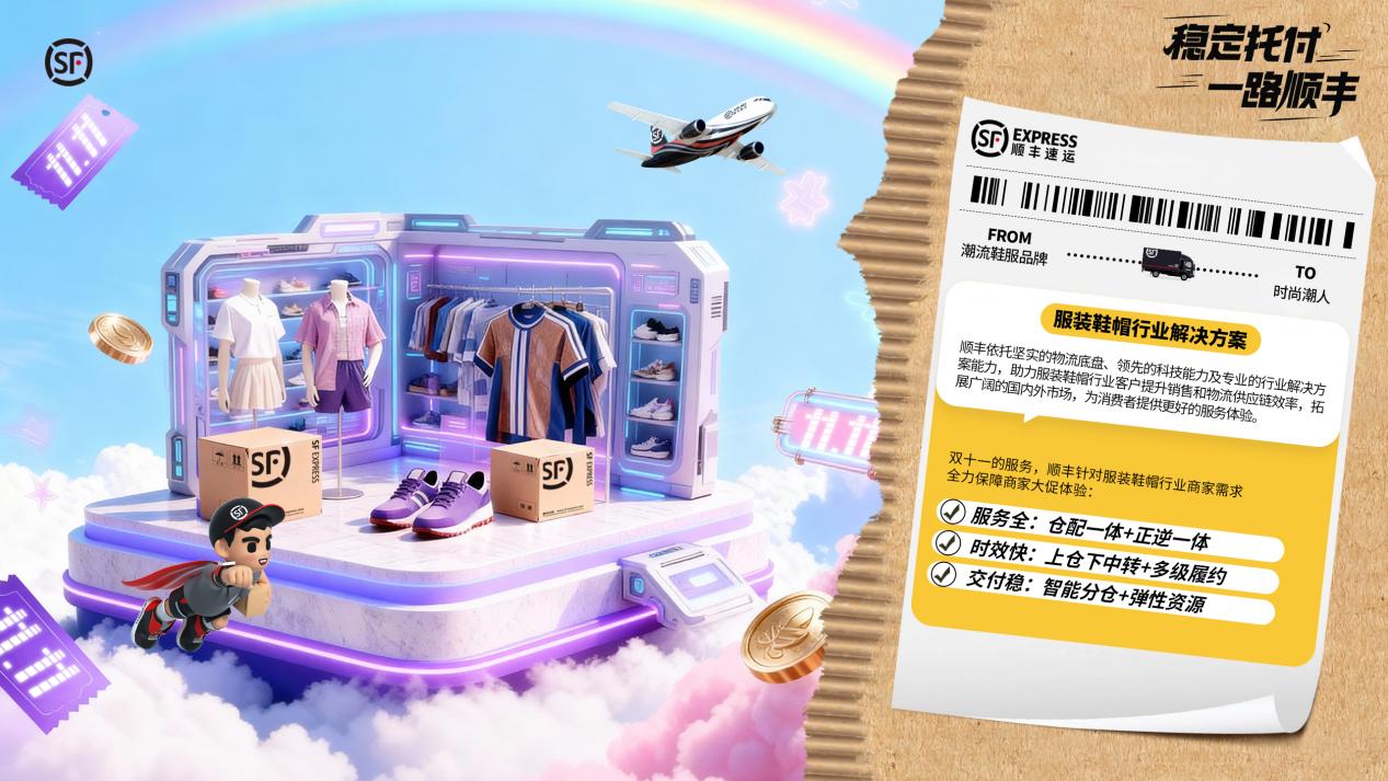 針對銷售波動大、退換貨集中的特點,順豐為服裝鞋帽行業(yè)提供“服務全、時效快、交付穩(wěn)”三大保障。通過“倉配一體+正逆一體+數字化賦能”實現庫存高效管理與退換無縫銜接,依托多級履約與智能分倉響應多波段訂單,助力商家提升全渠道效率,為消費者提供“更快、更穩(wěn)、更省心”的購物體驗。
